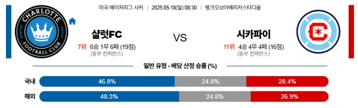 【미국 메이저리그 사커】05월18일 샬럿 vs 시카고 분석