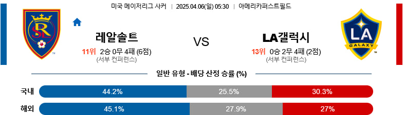 04/06(일) 레알솔트레이크vsLA갤럭시 메이저리그사커 분석