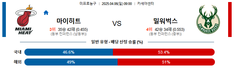 【NBA 프로농구】 04월 06일 마이애미 vs 밀워키