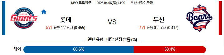 04월 6일 KBO 롯데 : 두산 KBO분석