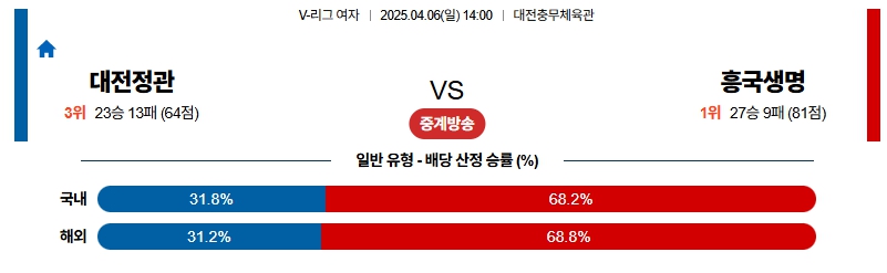 【V-리그 여자】04월06일 대전정관 vs 흥국생명