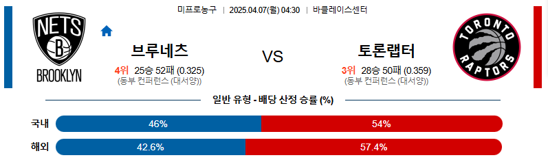 【NBA 프로농구】 04월 07일 브루클린 vs 토론토