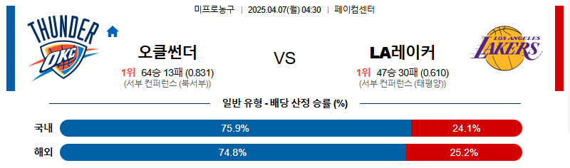 【NBA 프로농구】 04월 07일 오클라호마 vs LA레이커스