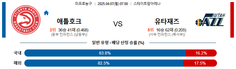 # 홈팀 : 애틀란타 호크스(36승41패)