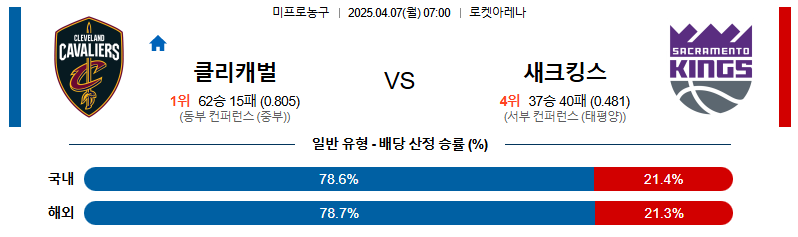 다음날 원정에서 디트로이트를 만나는 일정을 위해서 힘을 분산해야 하는 새크라멘토가 된다. 뛰어난 득점과 플레이메이킹 능력을 자랑하는 클리블랜드 백코트 조합의 위력이 나타날 것이다. 다만, 핸디캡 승부에서 범위는 과하다고 생각된다.