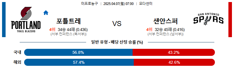# 홈팀 : 포틀랜드 트레일블레이저스(34승44패)