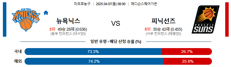 # 홈팀 : 뉴욕닉스(49승28패)