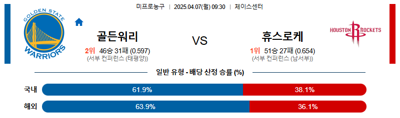# 홈팀 : 골든스테이트 워리어스(46승31패)