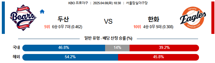 04월 8일 KBO 두산 : 한화 KBO분석