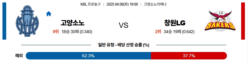 ◎ 가능성이 높은 선택 =>고양 소노 스카이거너스 승리