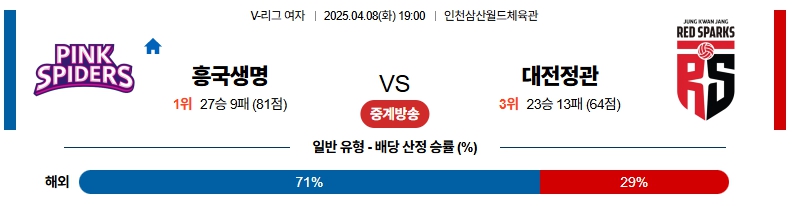 【V-리그 여자】04월08일 흥국생명 vs 대전정관장