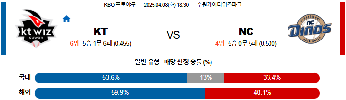 04월 8일 KBO KT : NC KBO분석
