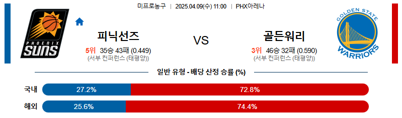 # 홈팀 : 피닉스 선즈(35승43패)