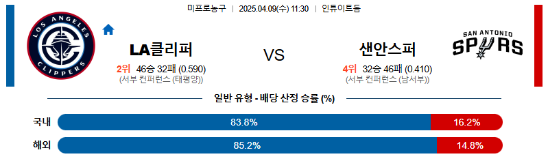 【NBA 프로농구】 04월 09일 LA클리퍼스 vs 샌안토니오