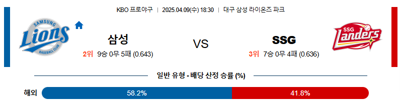 04월 9일 KBO 삼성: SSG KBO분석