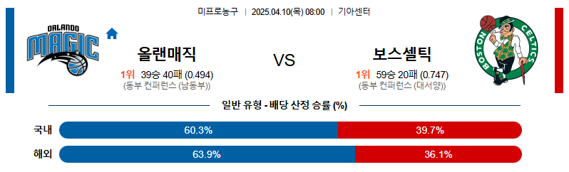 # 홈팀 : 올랜도 매직(39승40패)