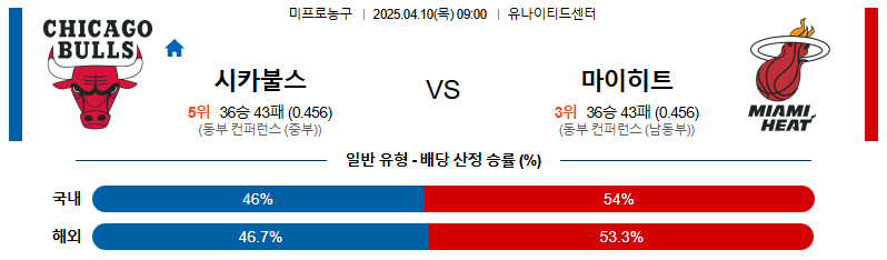 # 홈팀 : 시카고 불스(36승43패)