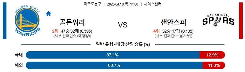 # 홈팀 : 골든스테이트 워리어스(47승32패)