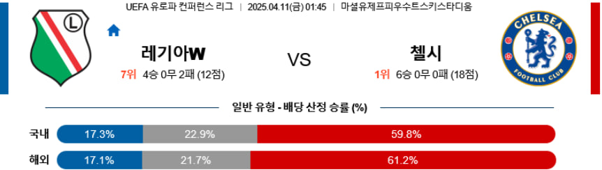 【UEFA 컨퍼런스 리그】04월11일 레기아 바르샤바 vs 첼시