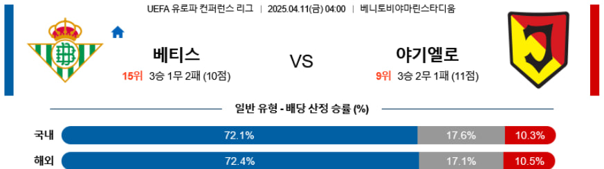 【UEFA 컨퍼런스 리그】04월11일 레알 베티스 vs 야기엘로니아