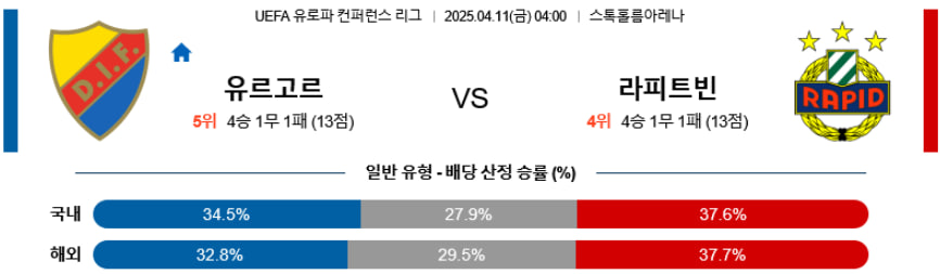 【UEFA 컨퍼런스 리그】04월11일 유르고르덴 IF vs SK 라피트 빈
