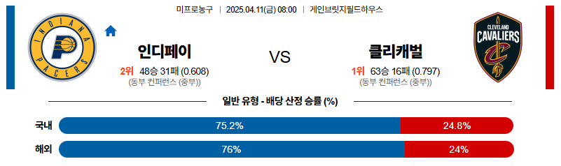 # 홈팀 : 인디애나 페이서스(48승31패)