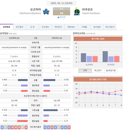 4월 11일 일본야구(NPB) 요코하마 VS 야쿠르트 [분석,추천]