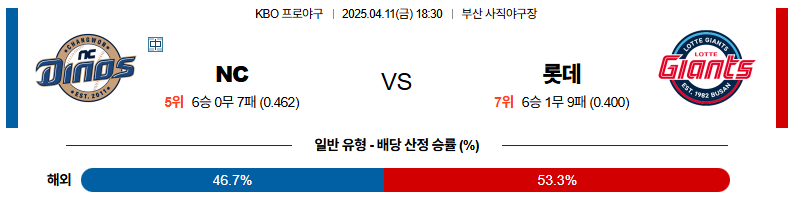 04월 11일 KBO NC: 롯데 KBO분석