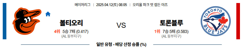 4월12일 MLB (볼티모어 vs 토론토) 프로토 경기분석자료