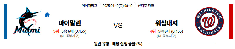 4월12일 MLB (마이애미 vs 워싱턴) 프로토 경기분석자료