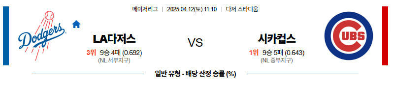 4월12일 MLB (LA다저스 vs 시카고컵스) 프로토 경기분석자료