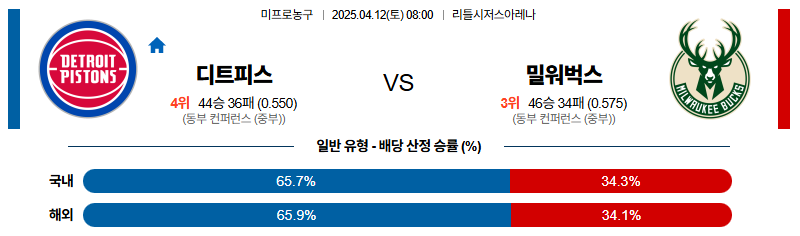# 홈팀 : 디트로이트 피스톤스(44승36패)