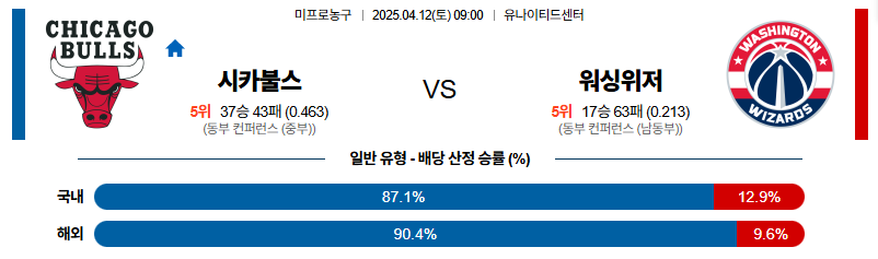 【NBA 프로농구】 04월 12일 시카고불스 vs 워싱턴