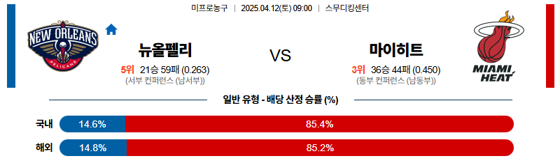 【NBA 프로농구】 04월 12일 뉴올리언스 vs 마이애미