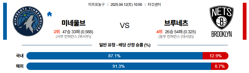 【NBA 프로농구】 04월 12일 미네소타 vs 브루클린