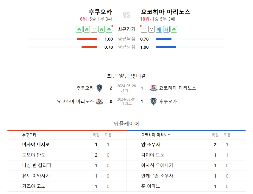 04.12 [J리그] 후쿠오카 VS 요코하마 마리노스 분석 및 프리뷰 !