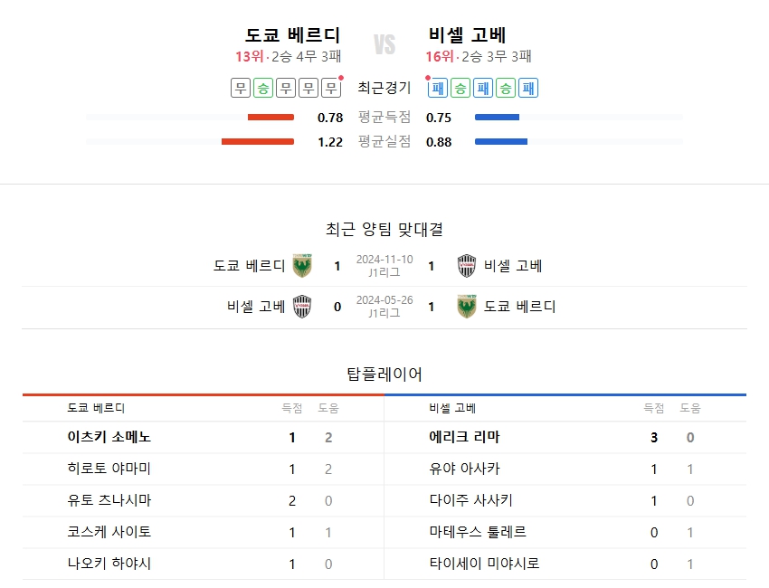 04.12 [J리그] 도쿄 베르디 VS 비셀 고베 분석 및 프리뷰 !