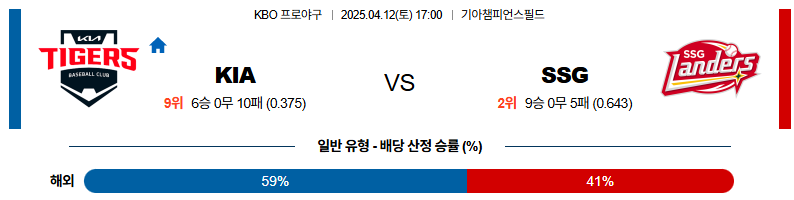 전날 박종훈의 부상 이탈은 오히려 SSG에게 도움이 되어버렸다. 박종훈을 노린 타선이 1이닝만에 물거품이 되면서 불펜 공략에 실패했기 때문. 오히려 정석적인 이번 경기가 더 위력적일수 있다. 올러의 투구가 문제인데 올러는 야간 경기 투구가 더 나은 편이고 KIA의 타자들은 홈에서 무기력하게 물러날 타입이 아니다. 홈의 잇점을 가진 KIA가 승리를 가져갈 것으로 본다.