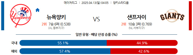 04월 13일 MLB 뉴욕양키스 샌프란시스코 분석
