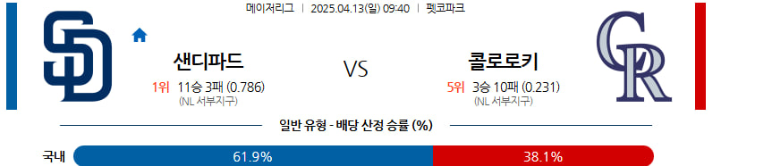 04월 13일 MLB 샌디에이고 콜로라도 분석