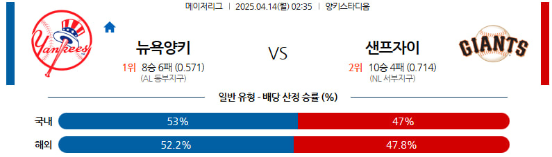 04월 14일 MLB 뉴욕양키스 샌프란시스코 분석