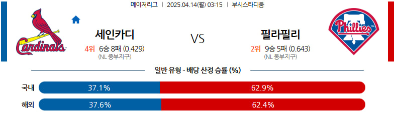 04월 14일 MLB 세인트루이스 필라델피아 MLB분석