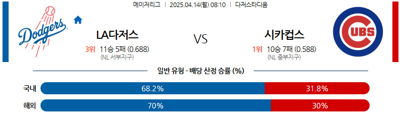 04월 14일 MLB LA다저스 시카고C 분석