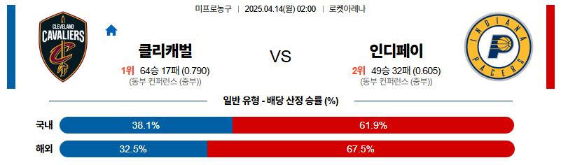 # 홈팀 : 클리블랜드 캐벌리어스(64승17패)