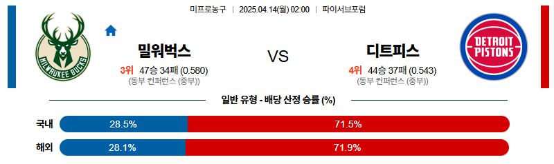 【NBA 프로농구】04월 14일 밀워키 vs 디트로이트