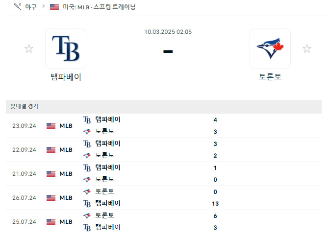 탬파베이 vs 토론토 - MLB 메이저리그 프리시즌