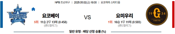 5월 2일 일본야구(NPB) 요코하마 VS 요미우리 분석