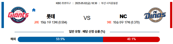 나균안은 기대라는걸 걸기엔 많이 부족한 투수다. 이번 경기는 그야말로 버티기의 투구를 보여줄듯. 최성영은 저격 선발임이 확실하지만 지금의 롯데 상대로 저격이 통할지는 미지수. 직전 롯데 상대의 호투는 당시 선발인 김태경이 최성영과 너무 스타일이 다른 투수라 가능했던 것이고 선발 최성영은 신뢰가 어렵다. 선발에서 앞선 롯데가 승리를 가져갈 것이다.