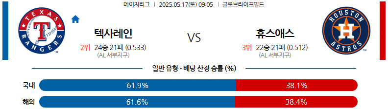 05월 17일 MLB 텍사스 휴스턴 MLB분석