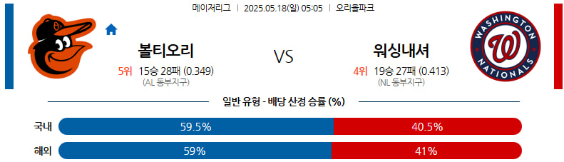 05월 18일 MLB 볼티모어 워싱턴 MLB분석